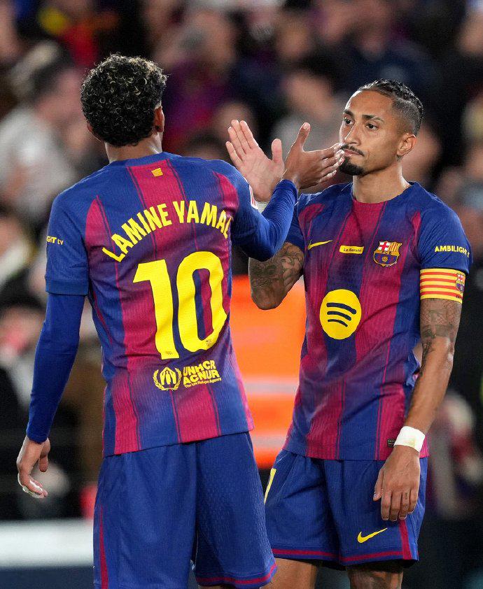 第80分钟,亚马尔破坏到禁区前沿内切打出兜射的曲线球,埃雷拉又是一记侧身飞扑;第86分钟,亚马尔右路直塞,孔德倒三角传中,卡泰纳突围不能反而奉上乌龙大礼,拉菲尼亚后门柱省略推射佛门献艺梅开二度,2:0!凭借着拉菲尼亚的梅开二度,巴萨2球主场拿下3分,联赛拿下了7连胜;在积分榜上依然最初了皇马达到了7分。