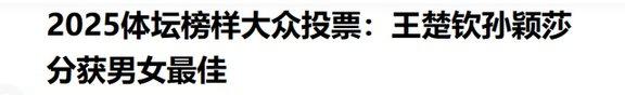 12月15日,体坛榜样年度评比公布。孙颖莎、王楚钦分获最好通顺员和最好组合。官媒的表扬落地:“孙颖莎用行径讲明注解了新期间通顺员的株连与担当,是后生一代的榜样。
