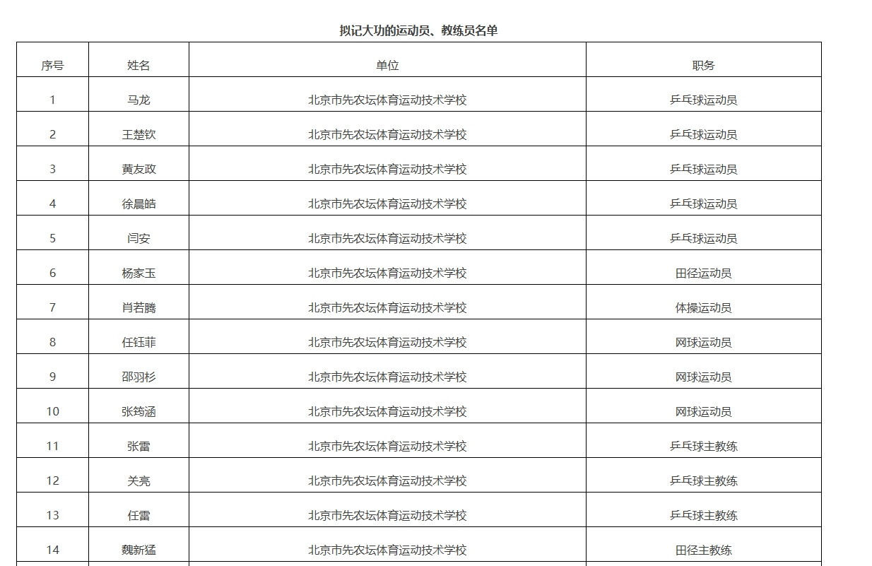 新京报讯据体育北京官微音信,在第十五届天下畅通会,北京体育健儿果决拼搏、结合结合,圆满完成参赛任务,为皆门体育奇迹再创佳绩。依据《北京市奇迹单元责任主谈主员奖励实行认识》等文献律例,市东谈主力资源社会保险局会同市体育局对在第十五届天下畅通会上作出了得孝敬的北京畅通员和教师员,开展记大功奖励责任。证明奖励责任部署,在关系单元积极推选的基础上,经详尽评审、统筹接头,笃定北京乒乓球畅通队等9个集体,马龙等28位同道拟记大功对象。