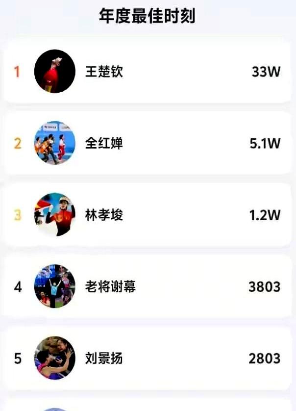 国乒团队获最好,羽毛球、跳水紧随自后,男篮也混了个榜单边角。