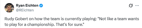 谈到丛林狼时常惨败,戈贝尔暗意:“咱们不像一支念念要争冠的球队,这是详情的。”