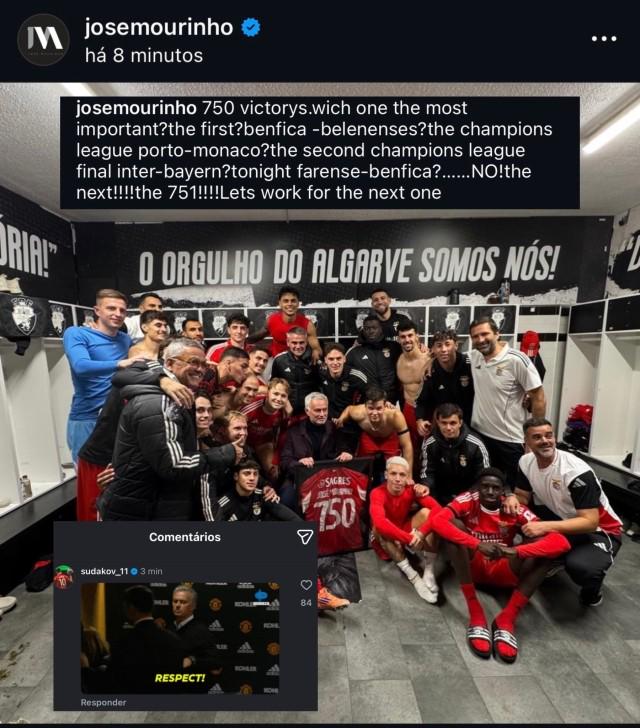 葡萄牙杯第5轮,本菲卡客场2比0轻取葡甲球队法鲁东谈主,穆里尼奥获取握教生存第750场顺利(1214场,胜率62%)。过后他在酬酢媒体上发图庆祝,并写谈:“750场顺利哪一场最蹙迫?第一场?本菲卡对贝伦东谈主?对摩纳哥的欧冠决赛?海外米兰对拜仁的第二场欧冠决赛?今天的法鲁东谈主对本菲卡?不!是下一场!第751场!” 本菲卡中场苏达科夫则在辩驳区回应了一张穆帅“尊重”的名状貌热诚图。