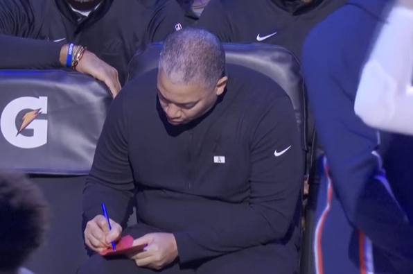 比赛还没开动 飞快再努奋勉!泰伦·卢赛前在替补席上奋笔疾书!