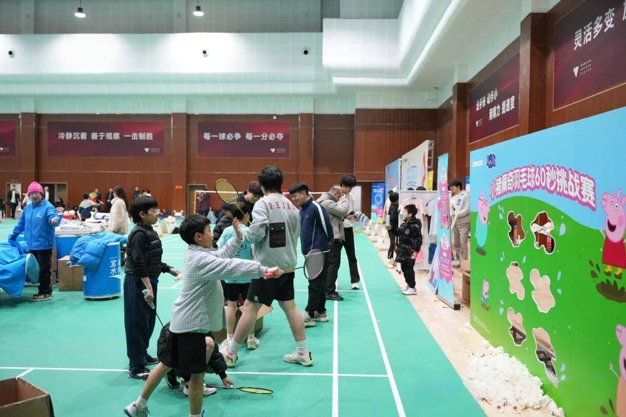 赛场一侧的总决赛嘉年华互动区相同干预超卓,“海绵宝宝”与“小猪佩奇”主题游戏区充满童趣——“佩奇精确发球罐”“海绵宝宝羽球勤恳赛”等意念念神志,将羽毛球妙技融入卡通场景,既考验小将们的控球精度与响应速率,又让各人在欢声笑语中减轻身心,丰富的定制畅通装备等奖品更是让参与的孩子们乐在其中。