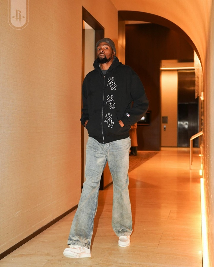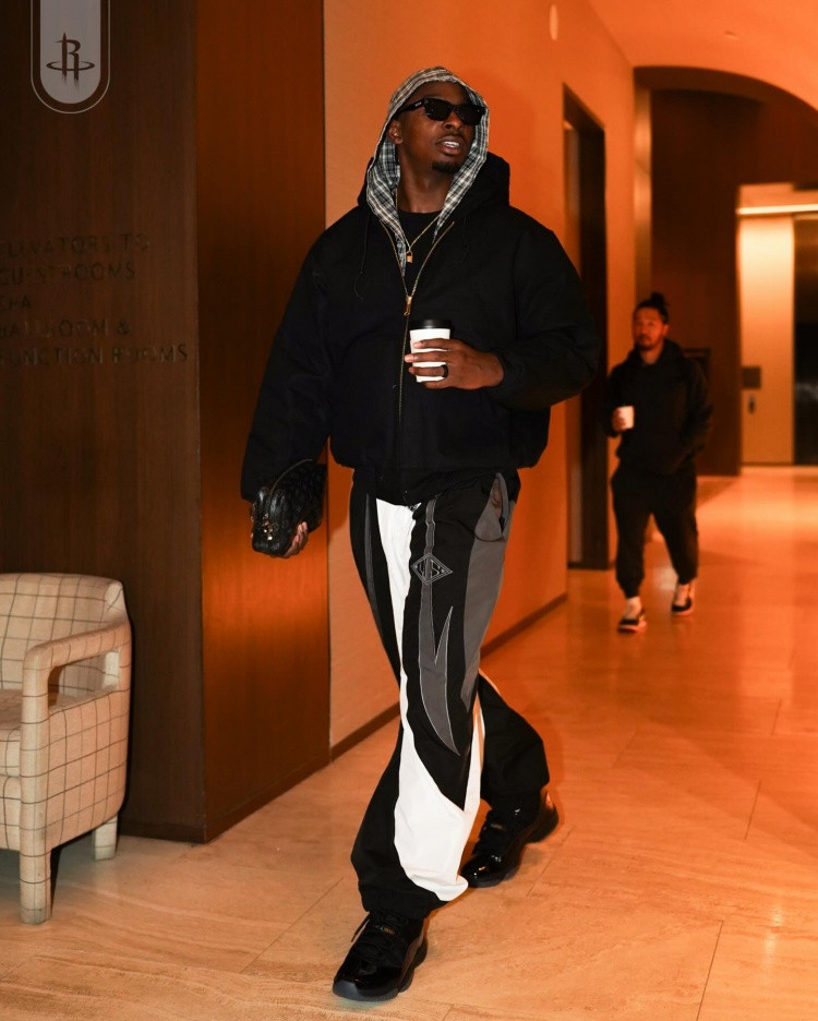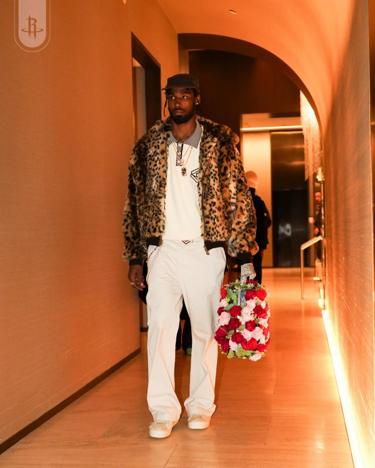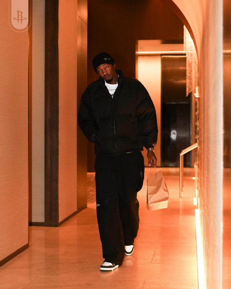 火箭型男入场秀: 申京墨镜风衣太有范儿 杜兰特气质说来话长