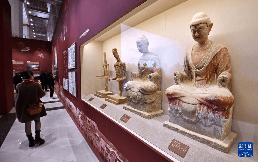 3月29日,不雅众在参不雅“如是莫高”敦煌艺术大展中展出的复刻佛像。