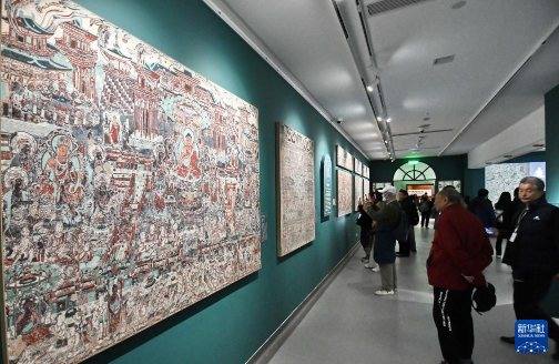 3月29日,不雅众在参不雅“如是莫高”敦煌艺术大展中展出的复刻壁画。